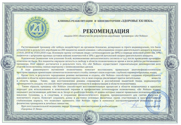 Тренажер "Air Nobius" с успехом стирает стереотипы о том, что сохранить хорошую физическую форму, а также гибкость и здоровье спины можно единственным образом – занимаясь интенсивными физическими нагрузками. Теперь легко и с удовольствием Вы сможете следить за собой благодаря растягивающему тренажеру «Air Nobius»!